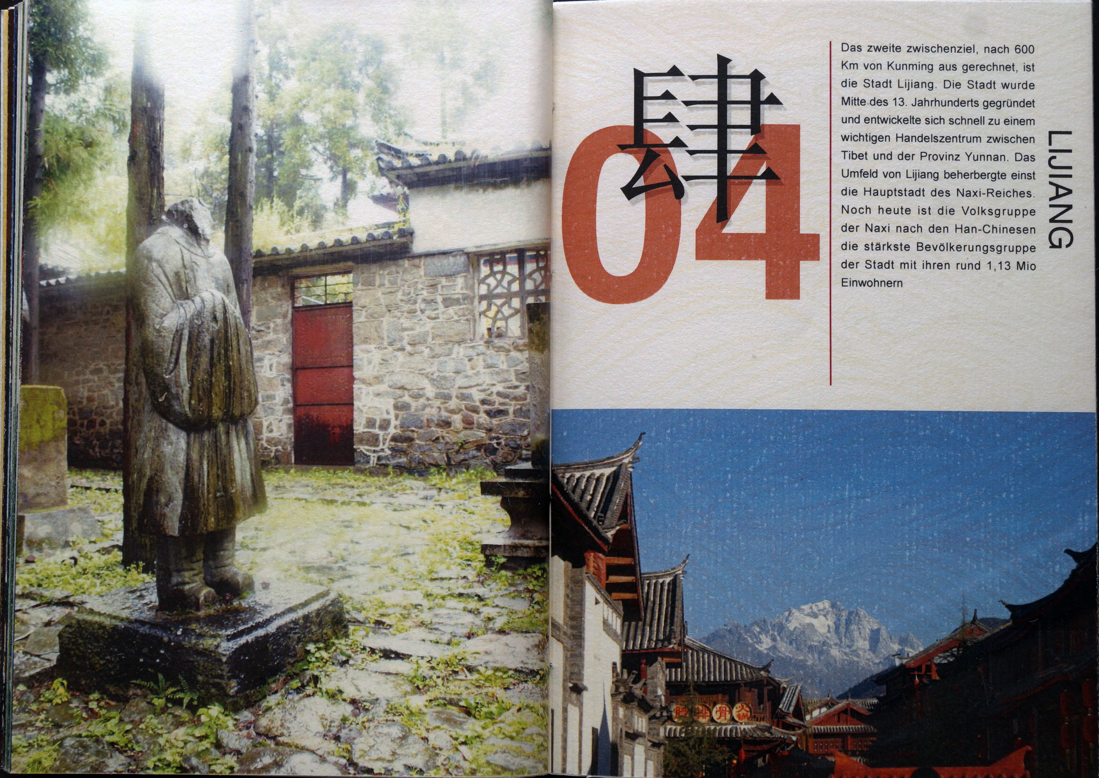 Ein Reisebericht von von der Provinzhauptstadt Kunming durch die Yunnanprovinz in das Himalaygebirge nach Khawa Karpo führt. Die Gestaltung ist der Thematik entsprechend authentisch gewählt.