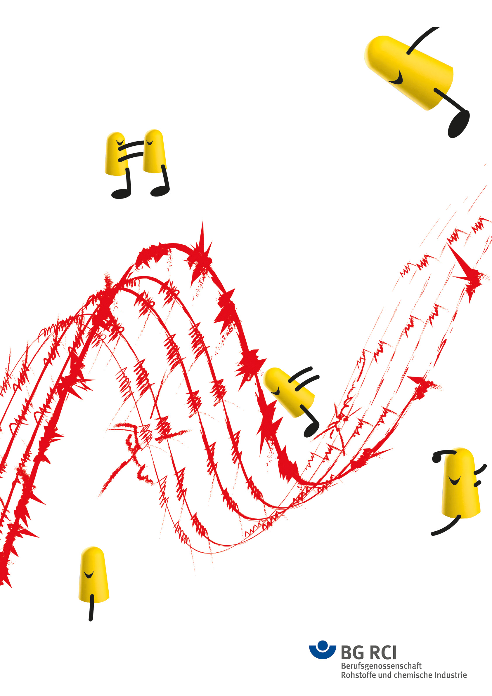 Entwürfe für den Plakatwettbewerb 2022 der BG RCI mit dem Motto "Lärm am Arbeitsplatz".