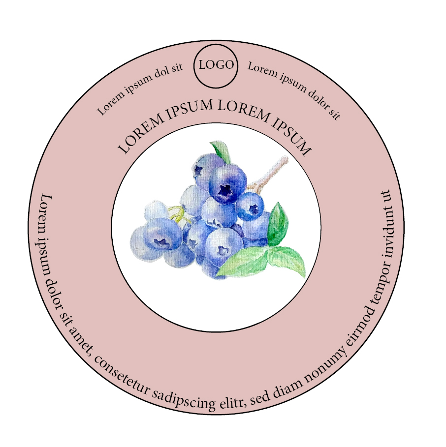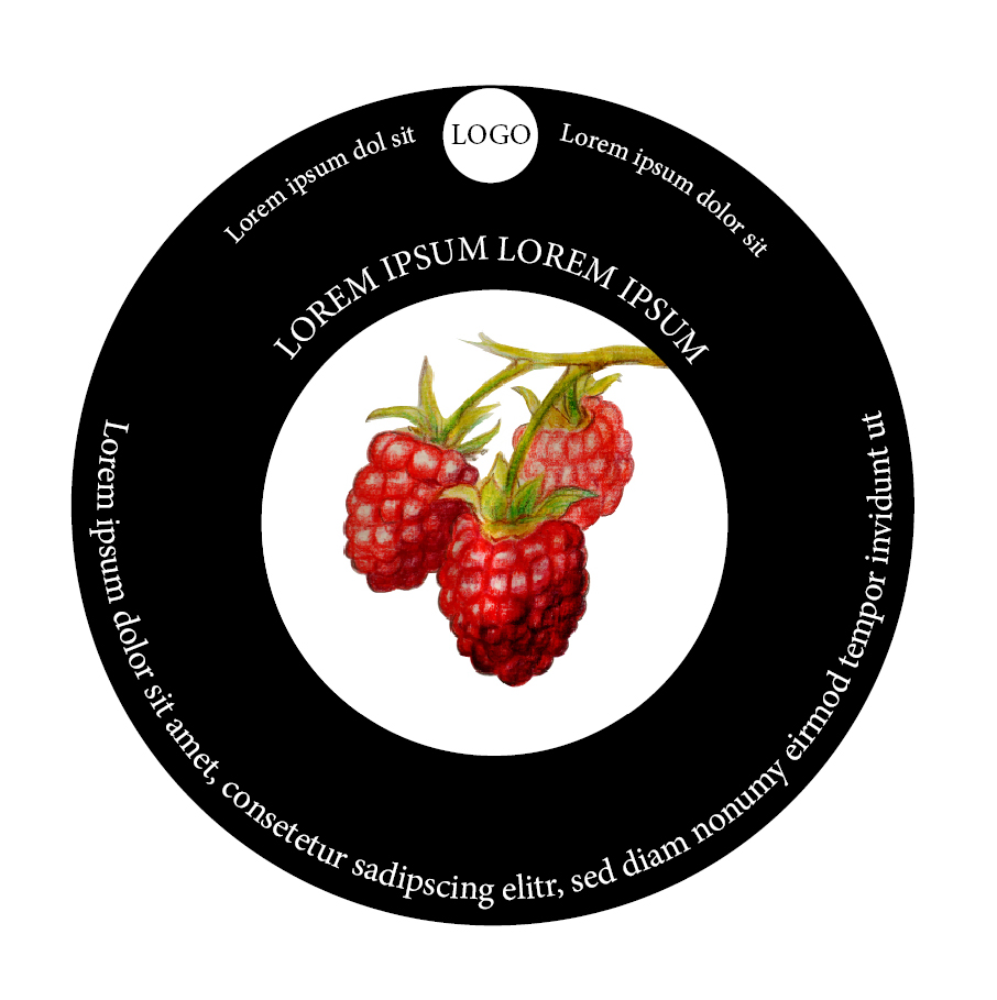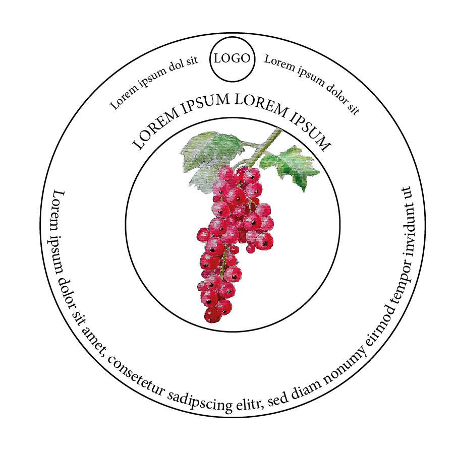 Entwürfe für die Etiketten von Prämium-Fruchtsträuchern einer Baumschule auf Basis von Handzeichnungen.