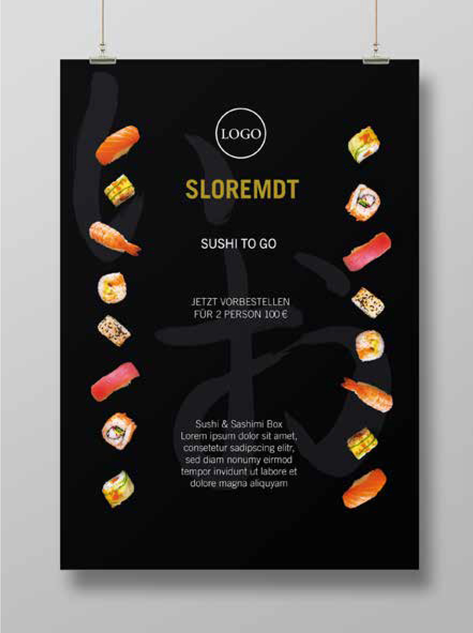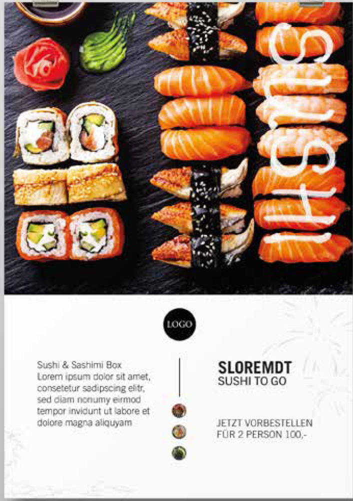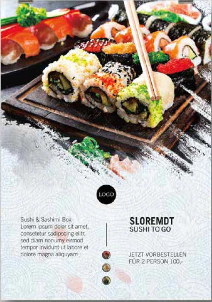 Entwürfe für die Präsentation von Sushigerichten in unterschiedlichen Medien